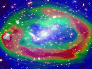 4年前,來自意大利/荷蘭的BeppoSAX衛(wèi)星的數(shù)據(jù)表明,在后發(fā)座星系團(tuán)中也可能存在高能X射線的某個特殊成分。瑞士日內(nèi)瓦大學(xué)Integral科學(xué)資料中心的多米尼克-艾克特說:“之前以已有兩個科研小組在對這些數(shù)據(jù)進(jìn)行分析,一組發(fā)現(xiàn)了這個成分,而另一組卻沒有!庇谑,艾克特及其同事開展了一項調(diào)研活動,探索這個神秘的現(xiàn)象。他們發(fā)現(xiàn),歐洲航天局的軌道伽馬射線天文臺明確探測到了蛇夫座星系團(tuán)中有異常高能X射線的存在,產(chǎn)生這種X射線的方式有兩種,且均包含高能電子。一種可能性是,電子被橫穿星系團(tuán)的磁場捕獲,從而繞磁場線進(jìn)行螺線運動,以X射線形式釋放出同步加速器輻射。另一種可能性是,電子可能與宇宙起源時殘留下的微波碰撞,發(fā)出X射線的電子。前者的電子能量是后者電子能量的10萬倍。